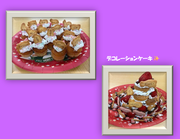 お昼には、手作りカレーとチキン、デコレーションケーキをみんなでいただきました。デコレーションケーキは○○ちゃんがお手伝してくれました。