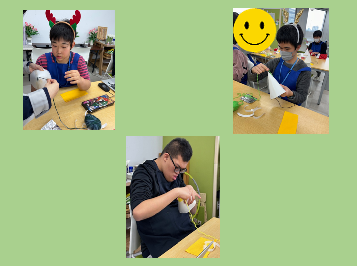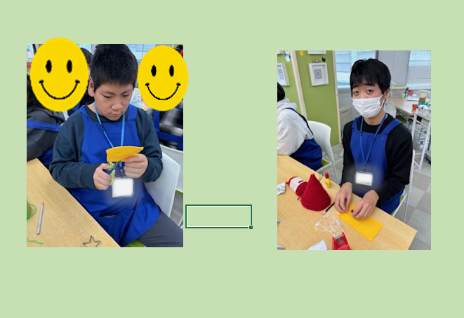完成した帽子をかぶり、嬉しそうに笑うこどもたちの姿がとても印象的でした🎅
