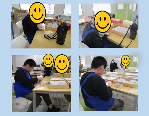 10箱分準備を終え、次はネジの袋入れの作業です。1袋に3本ずつネジを入れてもらいました。